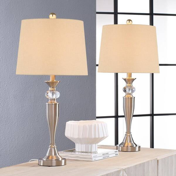 Cincinati 27 '' H Nickel Table Lamp With Gray Shade(Set of 2)