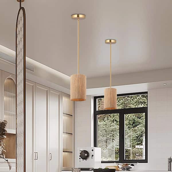 Collision 1-Light Gold/Wood Island Pendant with Paper Rope Shade