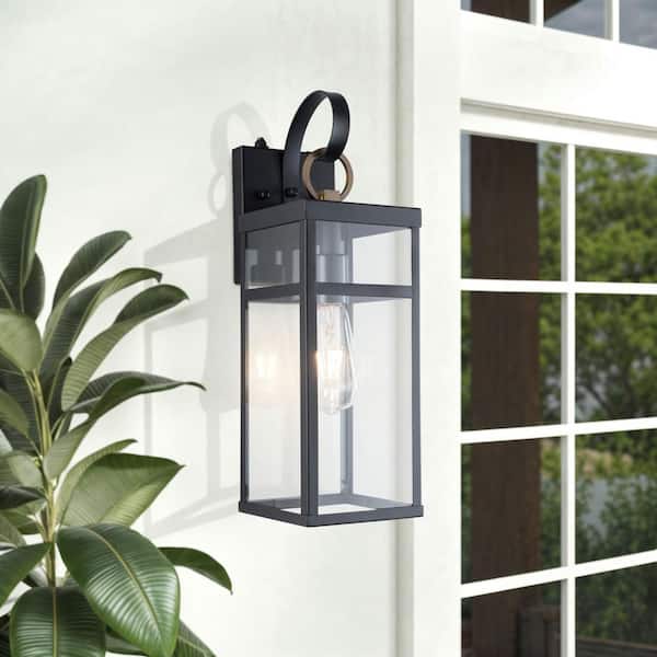 Decorators 17 in. Sand Grain Black Modern Farmhouse Outdoor Hardwired Wall Lantern Sconce with No Bulbs Included