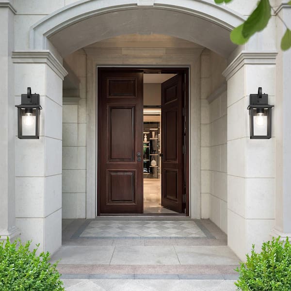 Hawaii 12.5 in. H 1-Bulb Black Hardwired Outdoor Dusk to Dawn Wall Lantern Sconce with LED Bulb