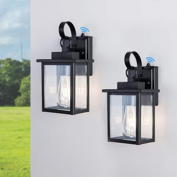 Hawaii 12 in. H 1-Bulb Black Hardwired Outdoor Wall Lantern Sconce with Dusk to Dawn with LED Bulb (2-Pack)