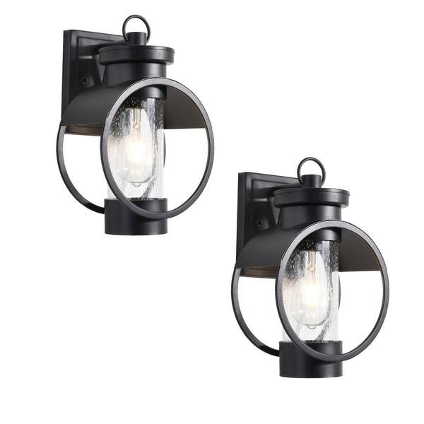 Hawaii 13 in. H 1-Bulb Black Hardwired Outdoor Sconce Dusk to Dawn Wall Lantern Sconce (4-Pack)