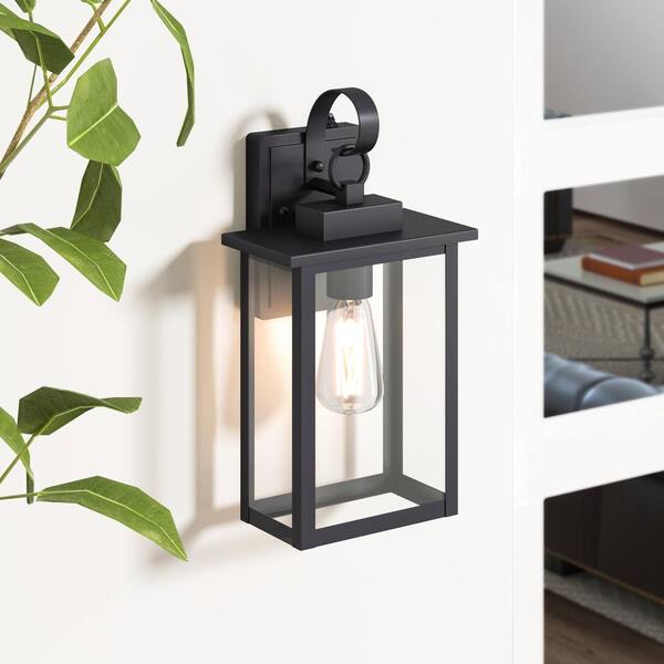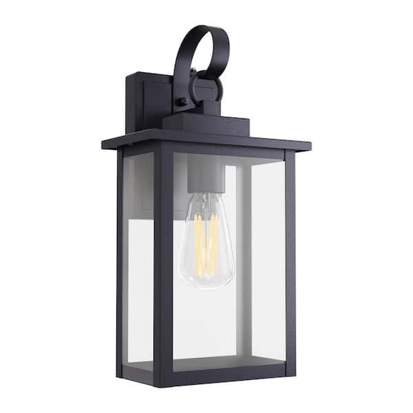 Hawaii 15 in. H 1-Bulb Black Hardwired Outdoor Wall Lantern Sconce with Dusk to Dawn with LED Bulb (6-Pack)