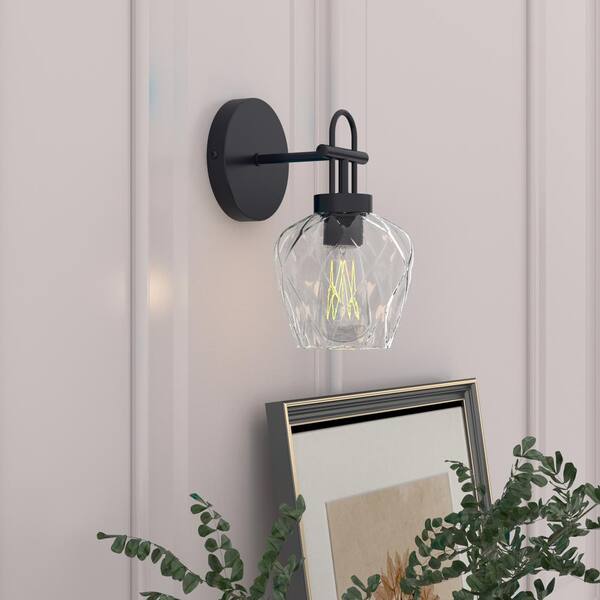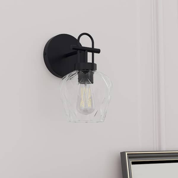 Houston 5.4 in. W 1-Light Matte Black Modern Wall Sconce with Hanging Bell Clear Glass Shade