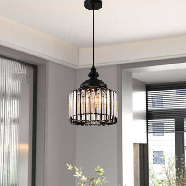 Indianapolis 1-Light Black Single Swag Drum Pendant with Crystal Accents