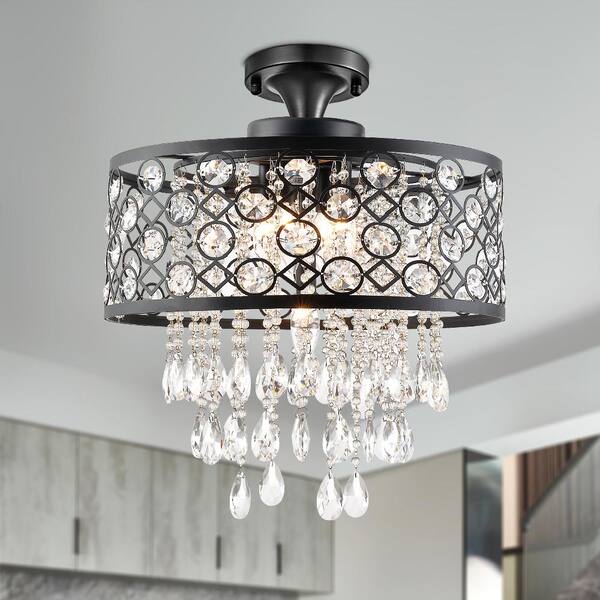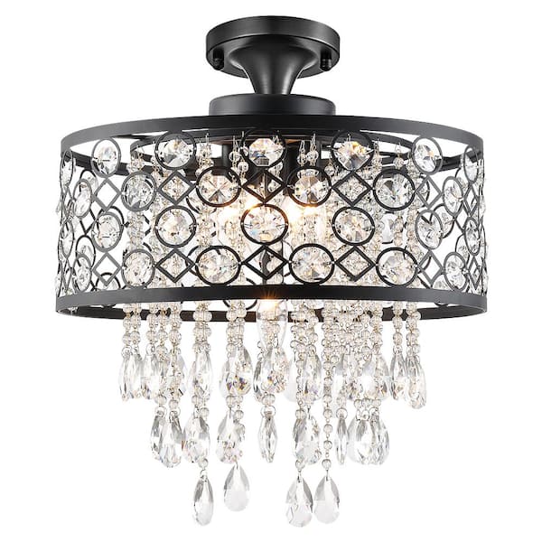 Indianapolis 17.3 in. 5-Light Black Semi Flush Mount With Crystals