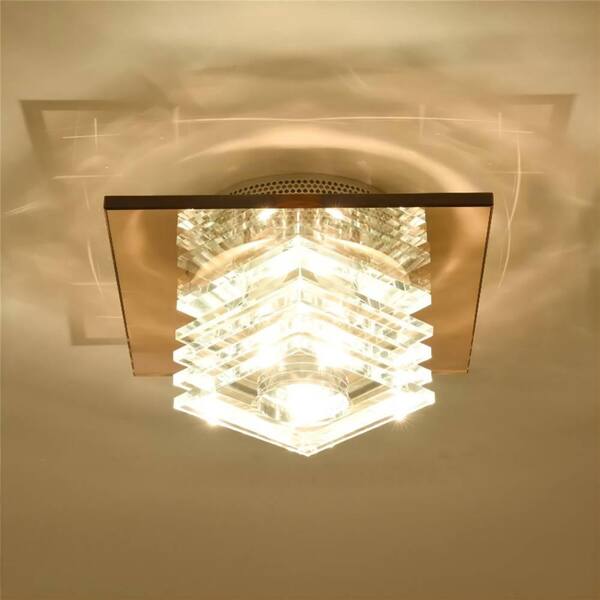 Kansas 7 in. 1-Light Clear Smoke Unique Statement Square Rectangle Flush Mount with Crystal Accents