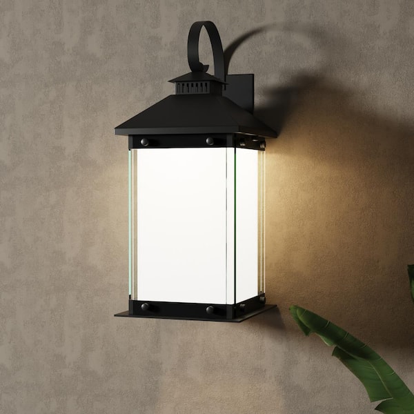 Montpelier 1-Light Sand Grain Black Dusk to Dawn LED Traditional Rectangle Hardwired Lantern Sconce with Clear Glass
