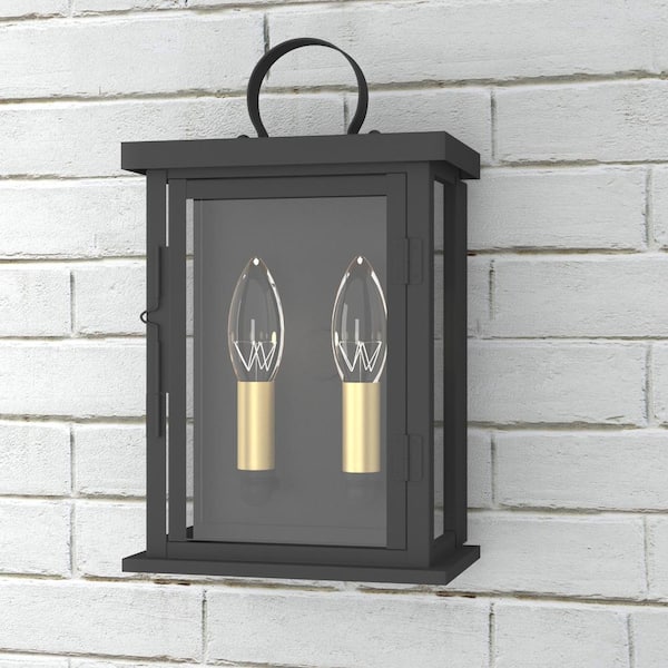 Montpelier 2-Light Black 12.25 in. H Dusk to Dawn Hardwired Outdoor Wall Lantern Sconce