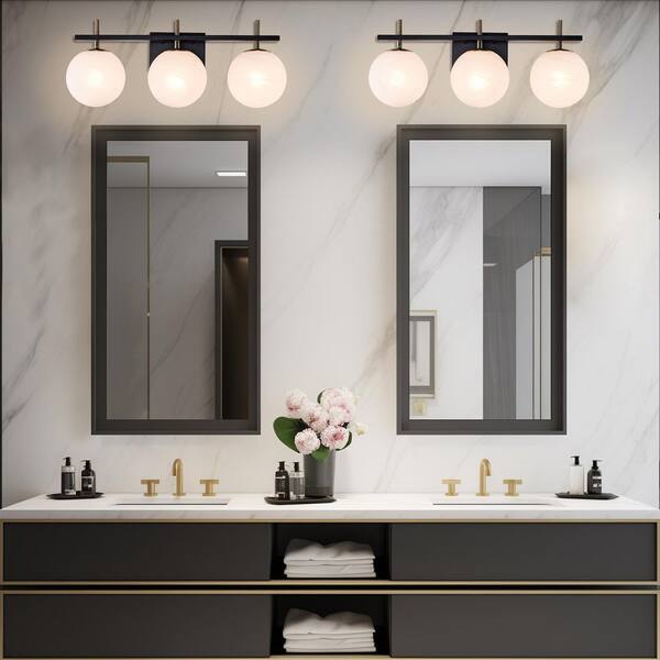 Raleigh 22 in. 3-light Modern Black Dimmable Vanity Light With White Cloud Glass Lampshade