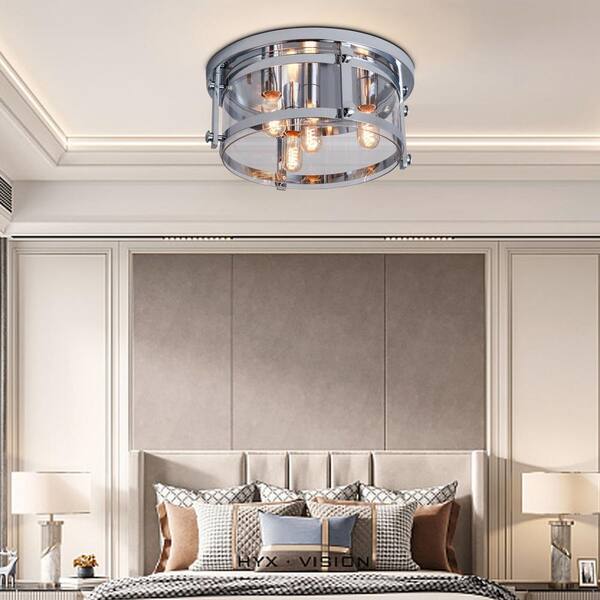 Raleigh 4-Light 16.8 in. Chrome Unique/Statement Drum Flush Mount With Glass Shade