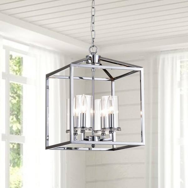 Springfield 4 - Light Chrome Lantern Square/Rectangle Chandelier with Wrought Iron Accents