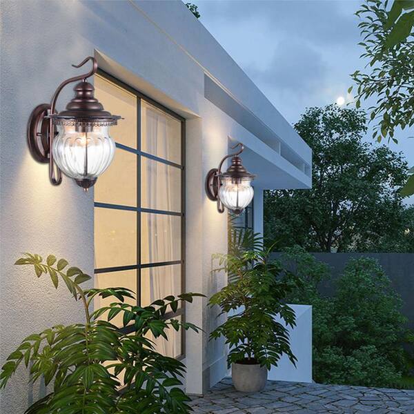 Topeka Ancient Red 12.6'' H Hardwired Hammered Glass Outdoor Wall Lantern Sconce (Set of 2)