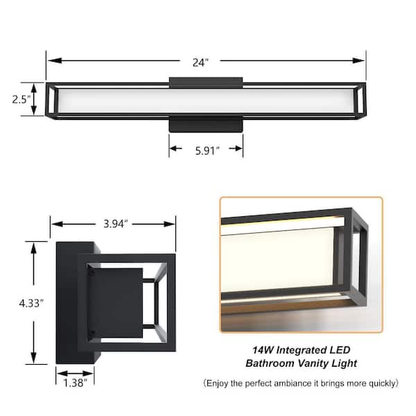 Washington 24 in. 1-Light Modern Matte Black Integrated LED Dimmable 3-CCT Vanity Light Bar