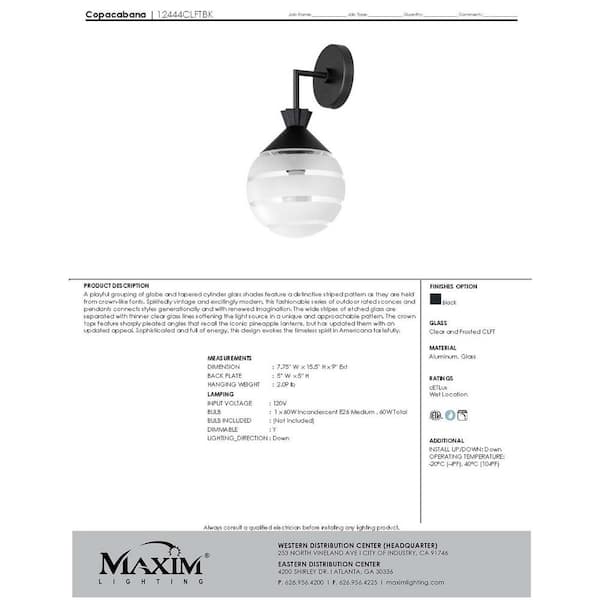 Copacabana Black Outdoor Globe Hardwired Wall Sconce