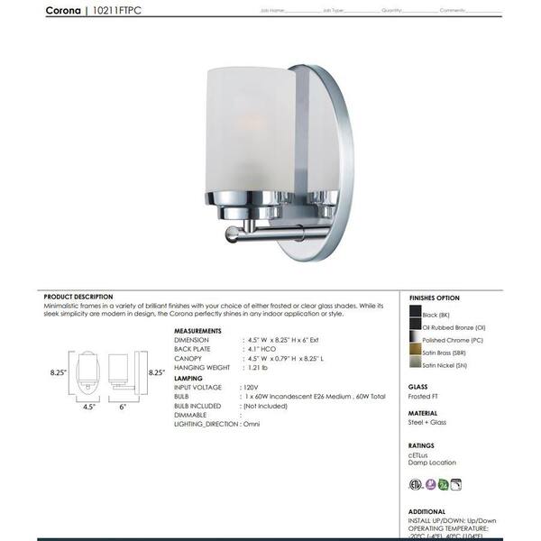 Corona 4.5 in. 1-Light Chrome Wall Sconce Vanity Light