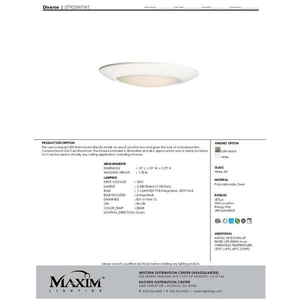 Diverse 13 in. LED Light Bulb Included Flush Mount 3000K