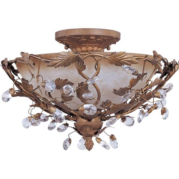 Elegante 3-Light Etruscan Gold Semi-Flush Mount Light