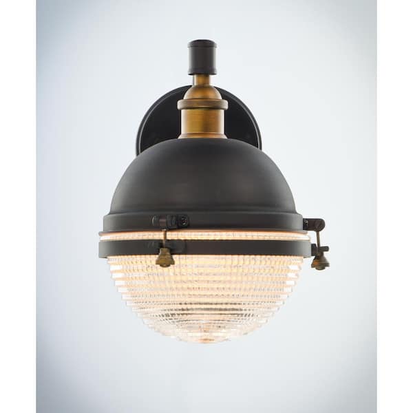 Portside 10 in. W 1-Light Oil Rubbed Bronze / Antique Brass Outdoor Wall Lantern Sconce