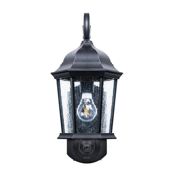 Coach Smart Security Textured Black Metal and Glass Outdoor Wall Lantern Sconce