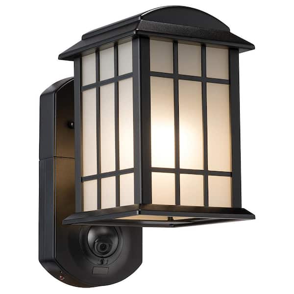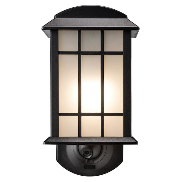 Craftsman Smart Security Textured Black Metal and Glass Outdoor Wall Lantern