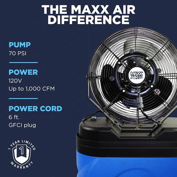 14 in. 3-Speed Portable Mid-Pressure Cooling Misting Personal Fan in Blue with 20 Gal. Water Tank