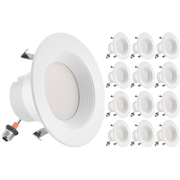 12Pk 4in 5 CCT Retrofit Recessed LED Downlight w/E26 Quick Connect, Color Selectable 2700K-5000K, Dimmable, 850 Lumens