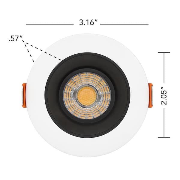 2 in. Slim Round Recessed Anti-Glare LED Downlight, White Trim Black Baffle, Canless IC Rated, 600 Lumens, 5 CCT