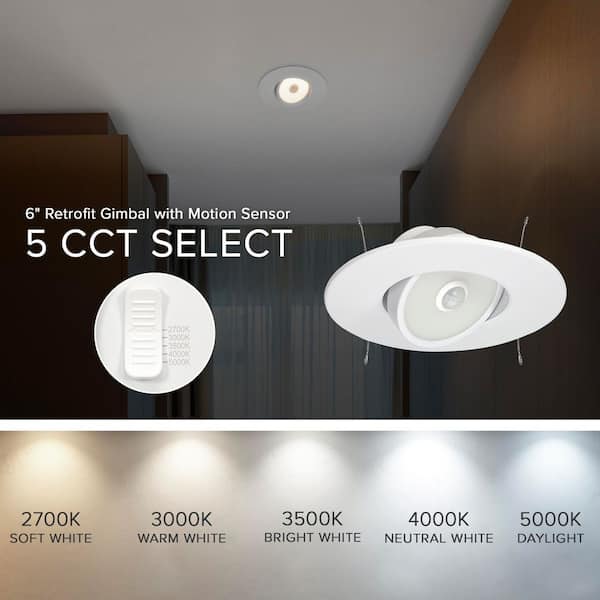 5 in. and 6 in. Adjustable Retrofit Recessed LED Motion Sensor Gimbal Downlight, 1200 Lumens, 5 CCT 2700K-5000K