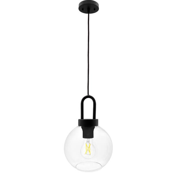 60-Watt Equivalent Integrated LED Black Pendant with Glass Globe