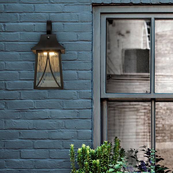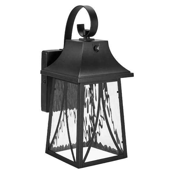 LED Outdoor Wall Light, Black w/Clear Water Glass, Dusk to Dawn Sensor, 900 Lumens, 3000K Warm White