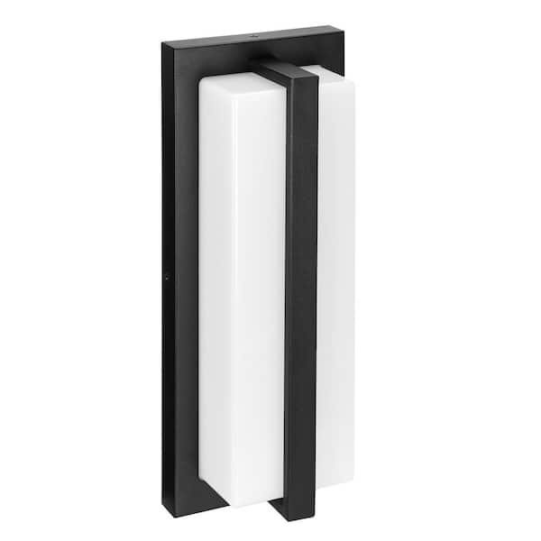 LED Outdoor Wall Light, Black w/Vertical Bar & Frosted Lens, Modern Porch Light, 1000 Lumens, 5 CCT 2700K-5000K