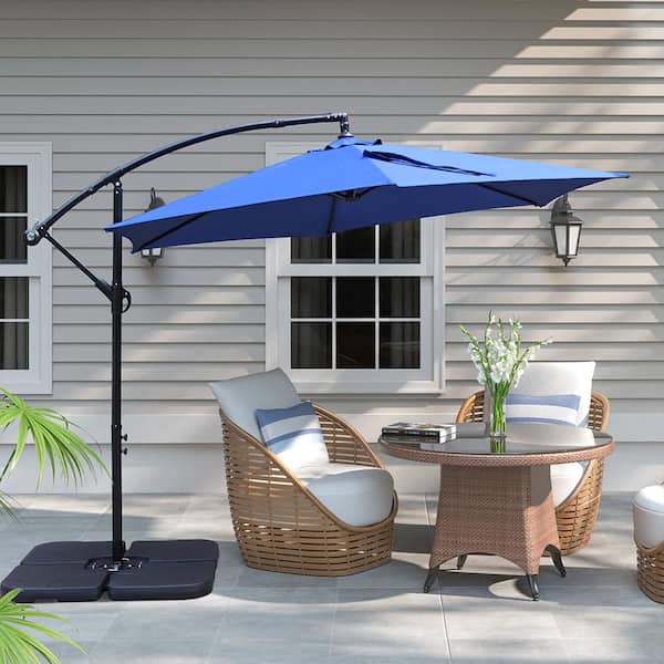 10 ft. Steel Offset Cantilever Outdoor Patio Umbrella with Easy Crank in Navy