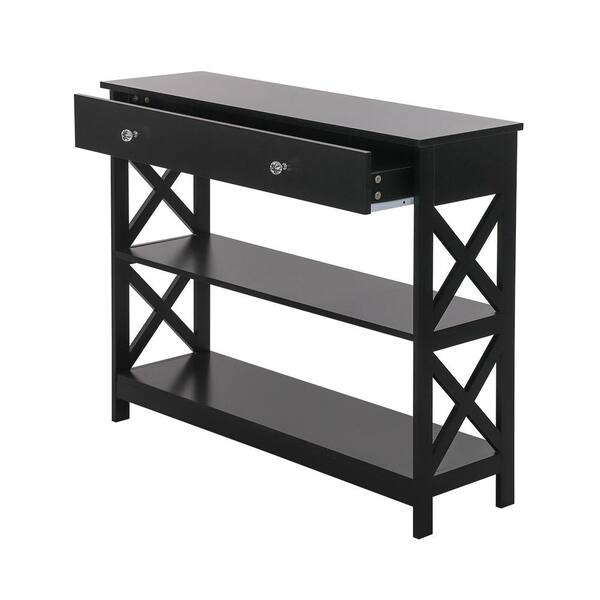 39.4 in. W x 31.5 in. H Black Color Rectangle Manufactured Wood Console Table with Long Drawer and Shelves
