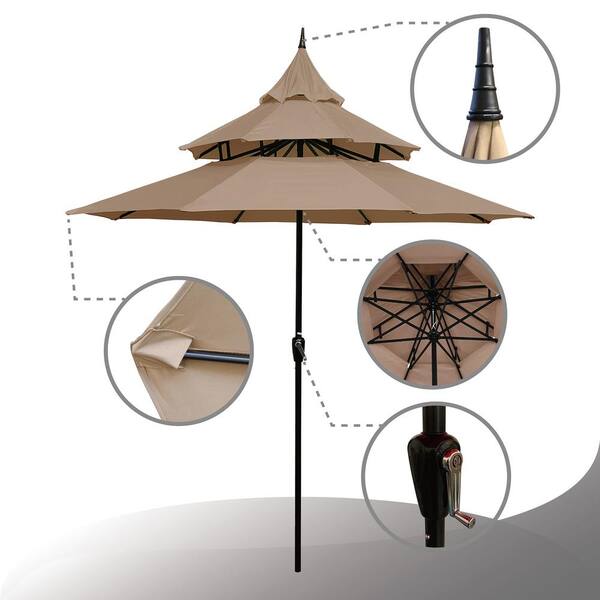 9 ft. Steel Crank Market Pagoda Patio Umbrella in Tan