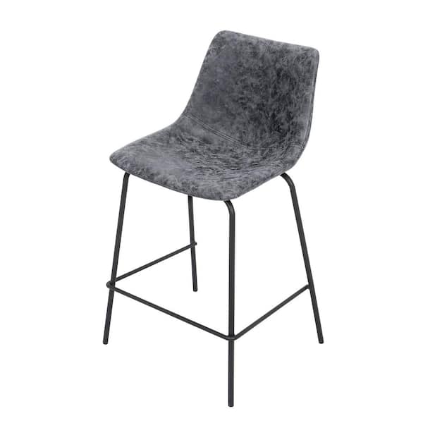 W 20.5 in. x Seat Height 24 in. Charcoal PU Low Back with Matte Black Metal Legs Counter and Bar Stool (Set of 2)