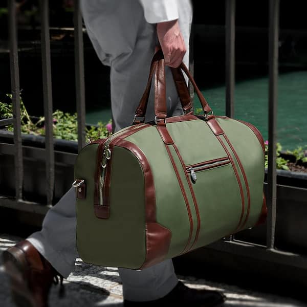 Pasadena, 20 in. Green Nano Tech-Light Nylon with Leather Trim Carry-all Duffel