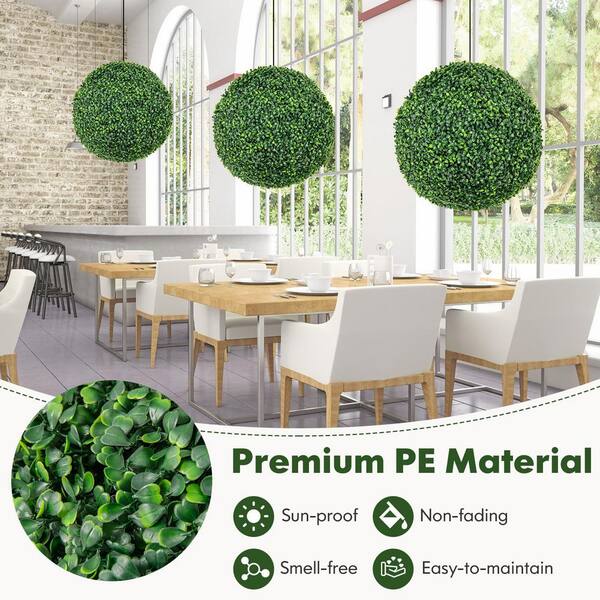 1.7 ft. Green Artificial Plant Boxwood Topiary Ball Tree for Patio Garden Front Door Balcony Backyard (2 Pieces)