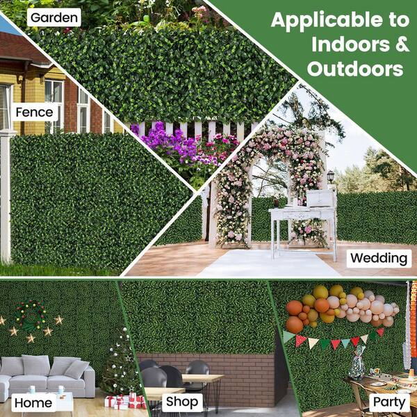 12-Piece 20 in. x 20 in. Green Artificial PE Topiary Gardenia Shrub Grass Hedge Panels