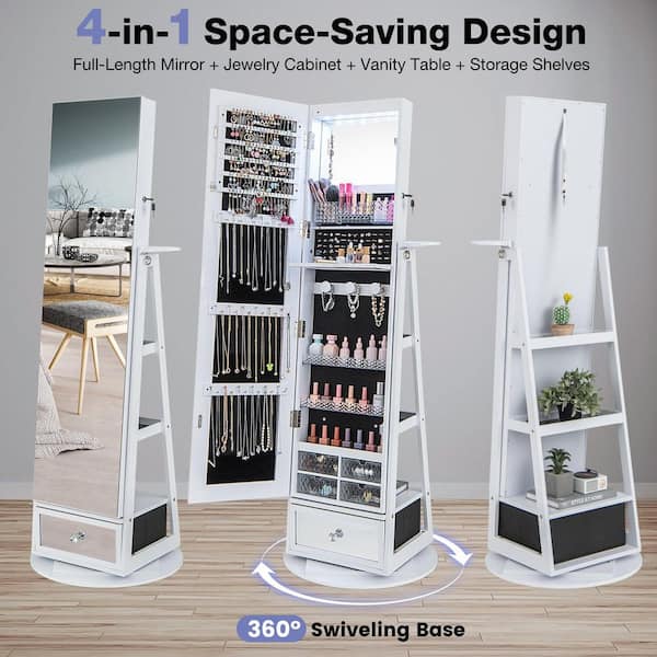 22 in. x 64.5 in. White 360° Swivel Freestanding MDF Jewelry Box Storage Organizer Armoire with Mirror and Lights
