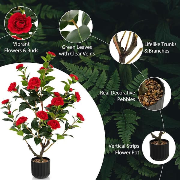 3 ft. Red Artificial Camellia Tree Topiary Faux Floral Plant Fake Tree for Decoration in Pot (2-Pack)