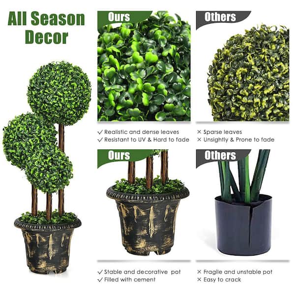 36 in. Green Artificial Topiary Triple Ball Tree Plant in Pot for Indoor and Outdoor Decor