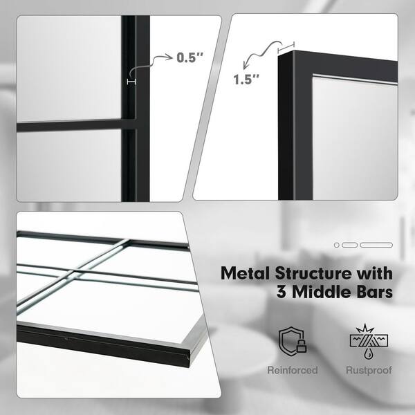 Black 28 in. x 40 in. Metal Frame 3-Layered Decorative Rectangle Wall Mirror for Dining Living Room