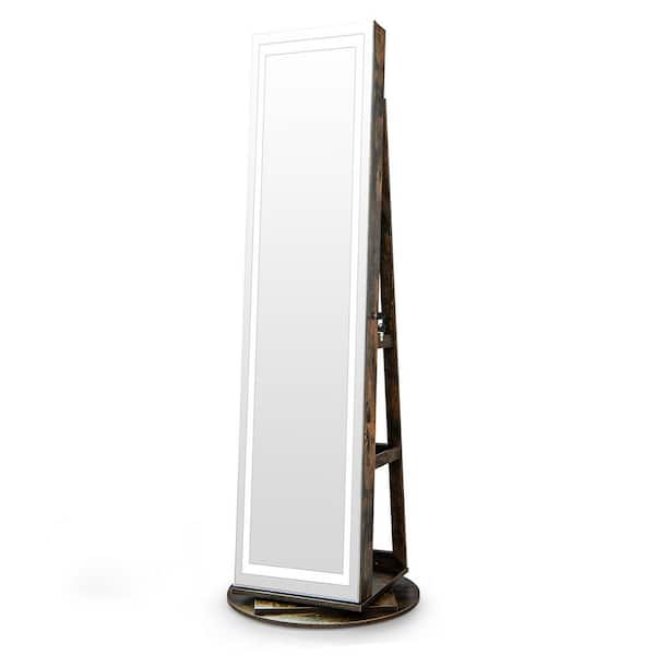 Coffee Standing Jewelry Cabinet with Adjustable LED Lights