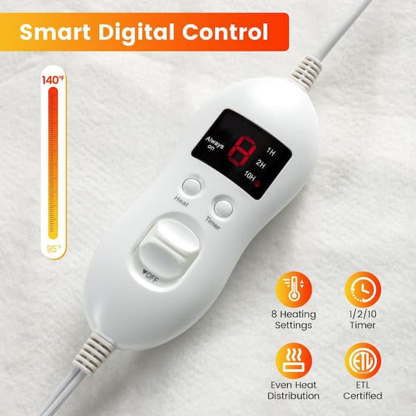 White Polyester Electric Blanket with Adjustable Temperatures 10 H Timer