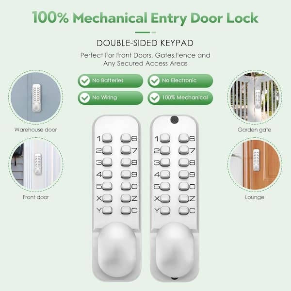 • 100% mechanical keyless entry door lock, no batteries or wiring
