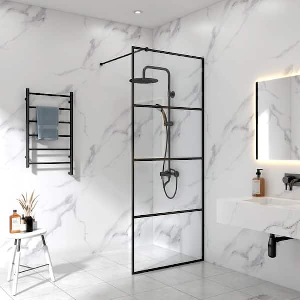 32 in. W x 76 3/4 in. H Fixed Shower Door Glass Panel in Black with Clear Glass