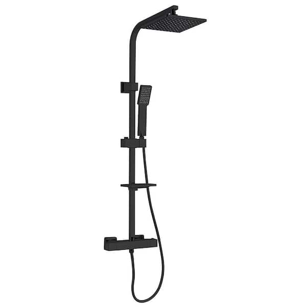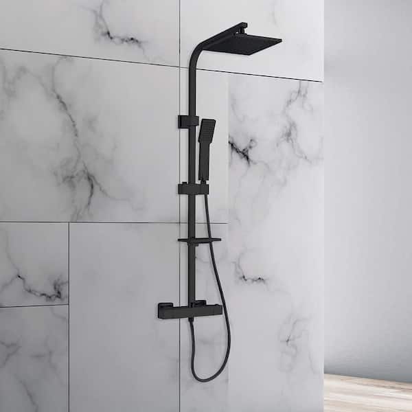 Magra 1-Spray Patterns 7.87 in. Wall Mount Dual Shower Heads and Handheld Shower Head in Black