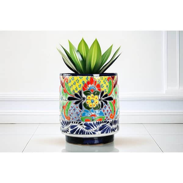 Medium Tall Cylinder 10 in. W x 12 in. H Talavera Indoor Ceramic Decorative Pot