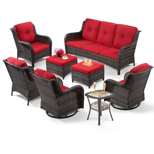 8-Piece Patio Conversation Sofa Set Furniture Sectional Seating Set with Red Cushion and Glass Desktop